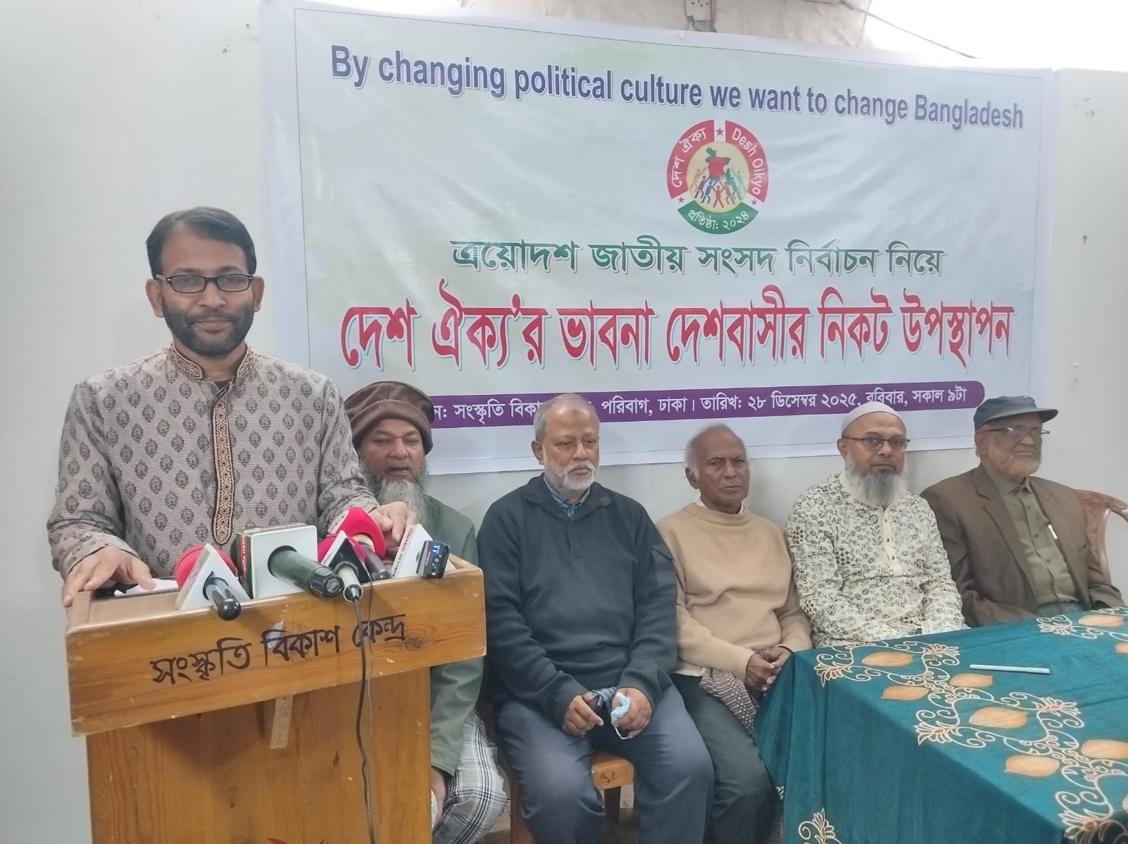 সভায় জানানো হয়, দেশ ঐক্য ১২ ফেব্রুয়ারির নির্বাচনে অংশ নেবে না, তবে নির্বাচন পেছানোর পক্ষেও নয়। নেতারা বলেন, নির্বাচন বিলম্বিত হলে নতুন রাজনৈতিক ও সামাজিক সংকট তৈরি হতে পারে। একই সঙ্গে তারা আশাবাদ ব্যক্ত করেন- নির্বাচন কমিশন আন্তরিক হলে এবং প্রশাসন নিরপেক্ষ ভূমিকা পালন করলে এখনও ১৯৯১ বা ১৯৯৬ সালের মতো একটি গ্রহণযোগ্য নির্বাচন আয়োজন সম্ভব।