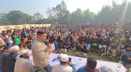 ত্রয়োদশ জাতীয় সংসদ নির্বাচনকে সামনে রেখে লক্ষ্মীপুরের রামগঞ্জে ১১ দলীয় জোটের এক পদযাত্রা ও জনসভায় বক্তব্য রাখতে গিয়ে এনসিপি আহ্বায়ক নাহিদ ইসলাম ভোটের মাঠে ‘পাহারা’ দেওয়ার ঘোষণা দিয়েছেন। আজ সোমবার (২৬ জানুয়ারি) রাতে রামগঞ্জ পাইলট বালিকা উচ্চ বিদ্যালয় মাঠে তিনি প্রধান অতিথির বক্তব্য দেন। নাম উল্লেখ না করে একটি প্রধান রাজনৈতিক দলের সমালোচনা করে নাহিদ ইসলাম বলেন: “একটি দল অন্য সকল দলকে বিলুপ্ত করে নিজের পেটের ভেতর নিয়ে নিয়েছে। তারা বলছে তাহাজ্জুদের পরেই ভোটকেন্দ্রে উপস্থিত থাকতে। আসলে তাহাজ্জুদের পর তারা সিল মারার পরিকল্পনা করছে এবং ভোটকেন্দ্র দখলের পাঁয়তারা করছে।” তিনি হুশিয়ারি দিয়ে বলেন, আগামী ১২ ফেব্রুয়ারি সাধারণ মানুষ যেন নির্ভয়ে ভোট দিতে পারে, সেজন্য নেতাকর্মীরা কেন্দ্র পাহারা দেবে। যারা বাধা হয়ে দাঁড়াবে, তাদের কঠোরভাবে প্রতিপ্রতিহত করা হবে। নাহিদ ইসলাম জানান, তাদের জোট ১০ দল থেকে এখন ১১ দলে উন্নীত হয়েছে। তিনি বলেন, “সংস্কার, সুশাসন ও সার্বভৌমত্বের বাংলাদেশ গড়ার লক্ষ্যে দেশপ্রেমিক ও ইসলামপ্রিয় শক্তি আজ ঐক্যবদ্ধ। আমরা ঐক্যবদ্ধ বাংলাদেশের দরজা সবার জন্য খোলা রেখেছি।” সভায় এনসিপির মুখপাত্র আসিফ মাহমুদ সজীব ভূঁইয়া ছাড়াও বক্তব্য দেন লক্ষ্মীপুর-১ (রামগঞ্জ) আসনের প্রার্থী মাহবুব আলম, উপজেলা জামায়াতের আমির নাজমুল হাসান পাটওয়ারী এবং পৌর জামায়াতের আমির হাসান আল বান্নাহ।