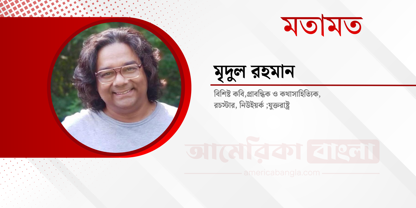 বিশিষ্ট কবি ,প্রাবন্ধিক ও কথাসাহিত্যিক রচস্টার, নিউইয়র্ক; যুক্তরাষ্ট্র