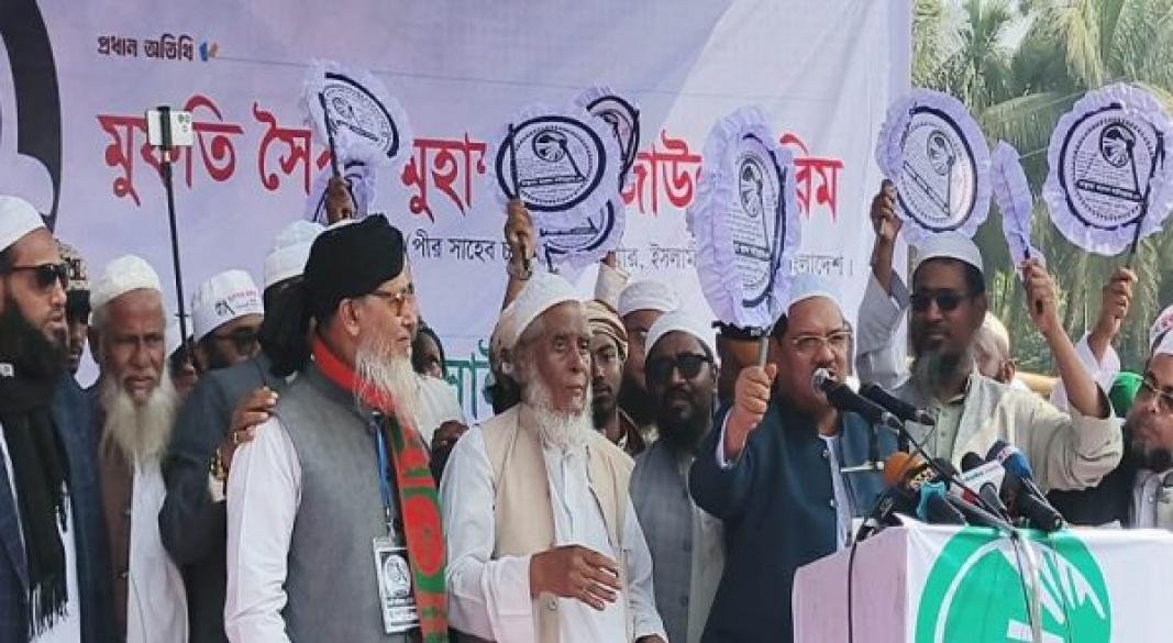 ইসলামি আন্দোলন বাংলাদেশের আমীর চরমোনাই পীর মুফতী রেজাউল করিম বলেছেন, জামায়াত নাকি ক্ষমতায় গিয়ে ইনসাফ প্রতিষ্ঠা করতে চায় । আমি জামায়াতের উদ্দেশ্যে বলছি ; আপনারা ক্ষমতা গেলে কোন ইমসাফ কায়েম করবেন? ভারতের ইনসাফ নাকি আমেরিকার। গোপনে আমেরিকার সাথে বসে ইনসাফ বাস্তবায়ন করবেন; ওই ইনসাফ বাংলাদেশের মানুষ দেখতে চায় না। আজকে বাংলাদেশে একটাই দল রয়েছে যে দল ইনসাফওশরীআহ মাধ্যমে প্রতিষ্ঠিত করতে চায় ইসলামী নীতি আদর্শ।