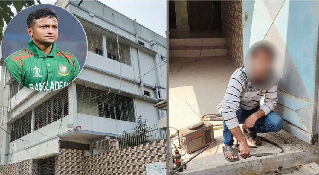সরেজমিনে সাকিবের বাড়িতে গিয়ে দেখা যায়, বাড়ির প্রধান প্রবেশপথ বা গেট মেরামতের কাজ করছেন ওয়েল্ডিং মিস্ত্রিরা। মিস্ত্রি মাসুদ জানান: